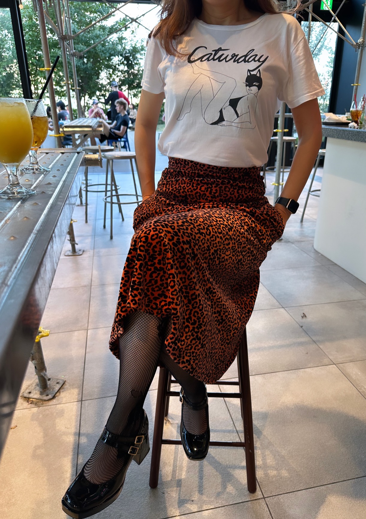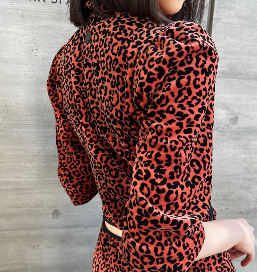 ベロア生地のレオパードアイテムは今までピンク、ブルー、ブラウンでお作りしてきましたが、この秋冬はオレンジのような赤みがかったブラウンのTerraというお色です。