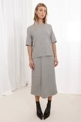 ライトシルバーのきらめくジャージー素材を使用したペンシルスカート。裾にあしらわれたマラボウトリムは取り外し可能で、シーンに合わせて華やかさを演出できます。 取り外し可能なマラボウトリム 裾のフックでトリムを簡単に着脱可能 素材:レーヨン(ビスコース)41%、ポリアミド31%、エラスタン6%、メタリック糸22% お手入れ:洗濯機洗い(30℃まで)※洗濯前にマラボウトリムを外してください エストニア製